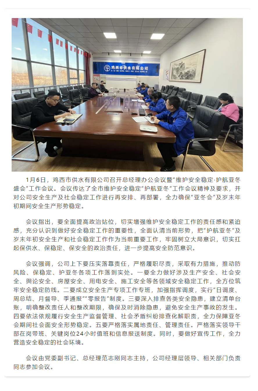 鸡西市供水有限公司召开“维护安全稳定·护航亚冬盛会”工作会议