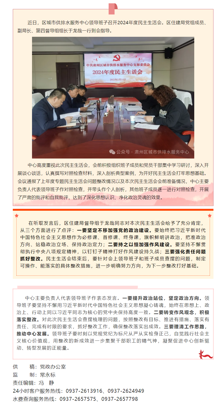 肃州区城市供排水服务中心党支部召开2024年度民主生活会