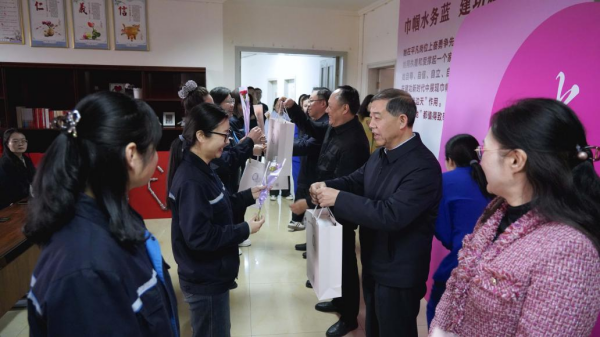 3月7日,领导班子成员手捧鲜花,为节日期间在岗的女职工献上最诚挚的节日祝福,并对水务最美的“她”进行颁奖。