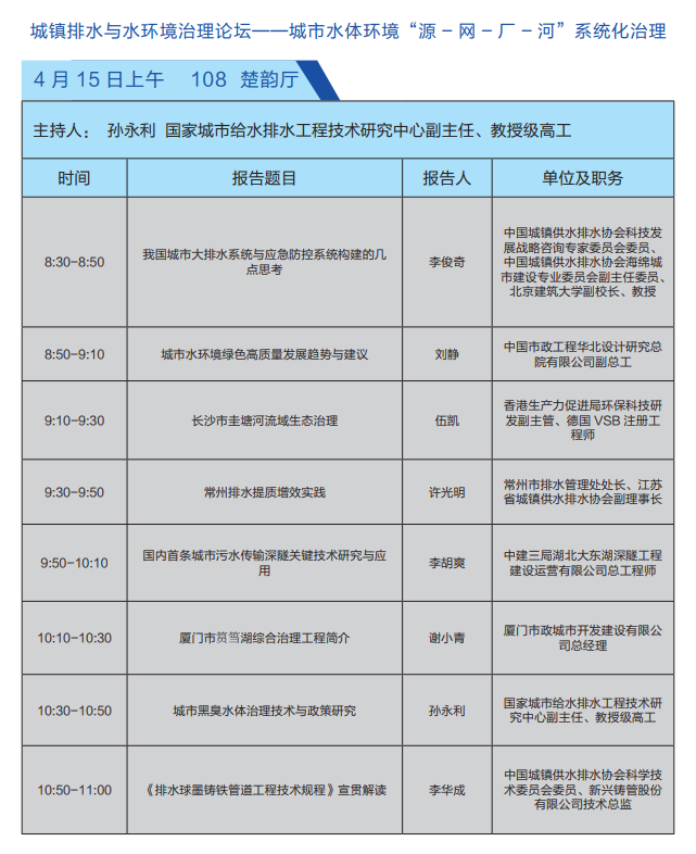 城镇排水与水环境治理论坛——城市水体环境“源 - 网 - 厂 - 河”系统化治理