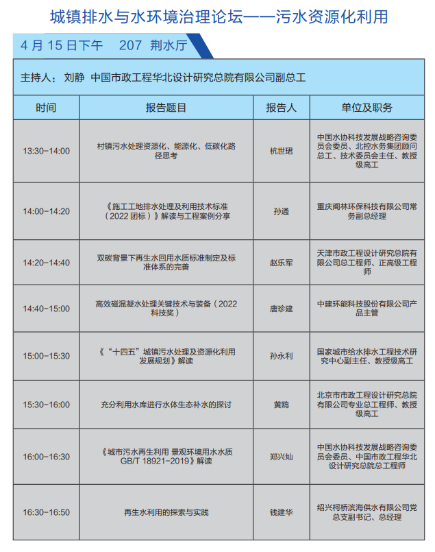城镇排水与水环境治理论坛——污水资源化利用(下)