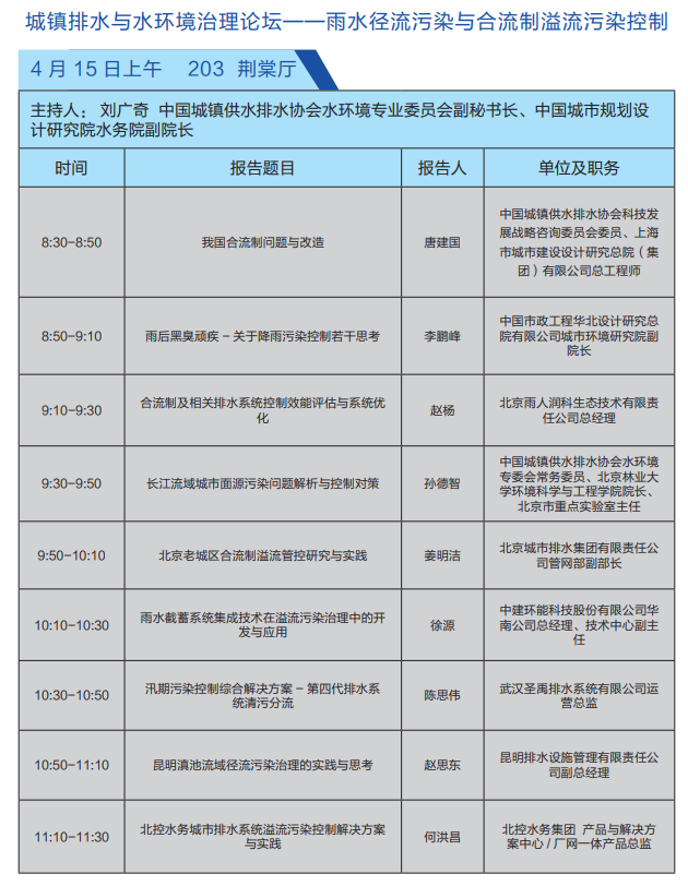 城镇排水与水环境治理论坛——雨水径流污染与合流制溢流污染控制