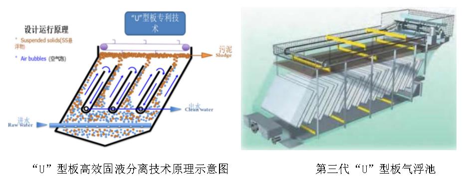 (4)明确了二级出水NH3-N和有机氮(EON)是限制污水处理厂出水TN浓度更低(<1.5 mg/L)的极限脱氮关键限制因素,以及工程极限脱氮下(出水TN<3 mg/L)进水TN允许浓度,为污水极限脱氮提供了核心技术支撑,为工程化设计提供可靠依据。(5)研发的新型溶气反应器(ADR)具有特殊的导流结构,较传统技术,溶气效率提高了近1倍;同时采用国内首创“U”型板提升处理负荷技术,气浮表面负荷能突破20 m3/(m2•h)。