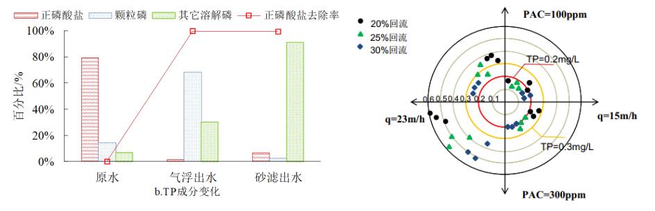 图5 TP含量及组分变化与气浮运行效果