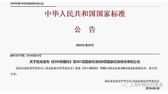 据国家标准化管理委员会官网消息,近日,中华人民共和国国家市场监督管理总局、中国国家标准化管理委员会批准发布《针叶树锯材》等501项国家标准和6项国家标准修改单。