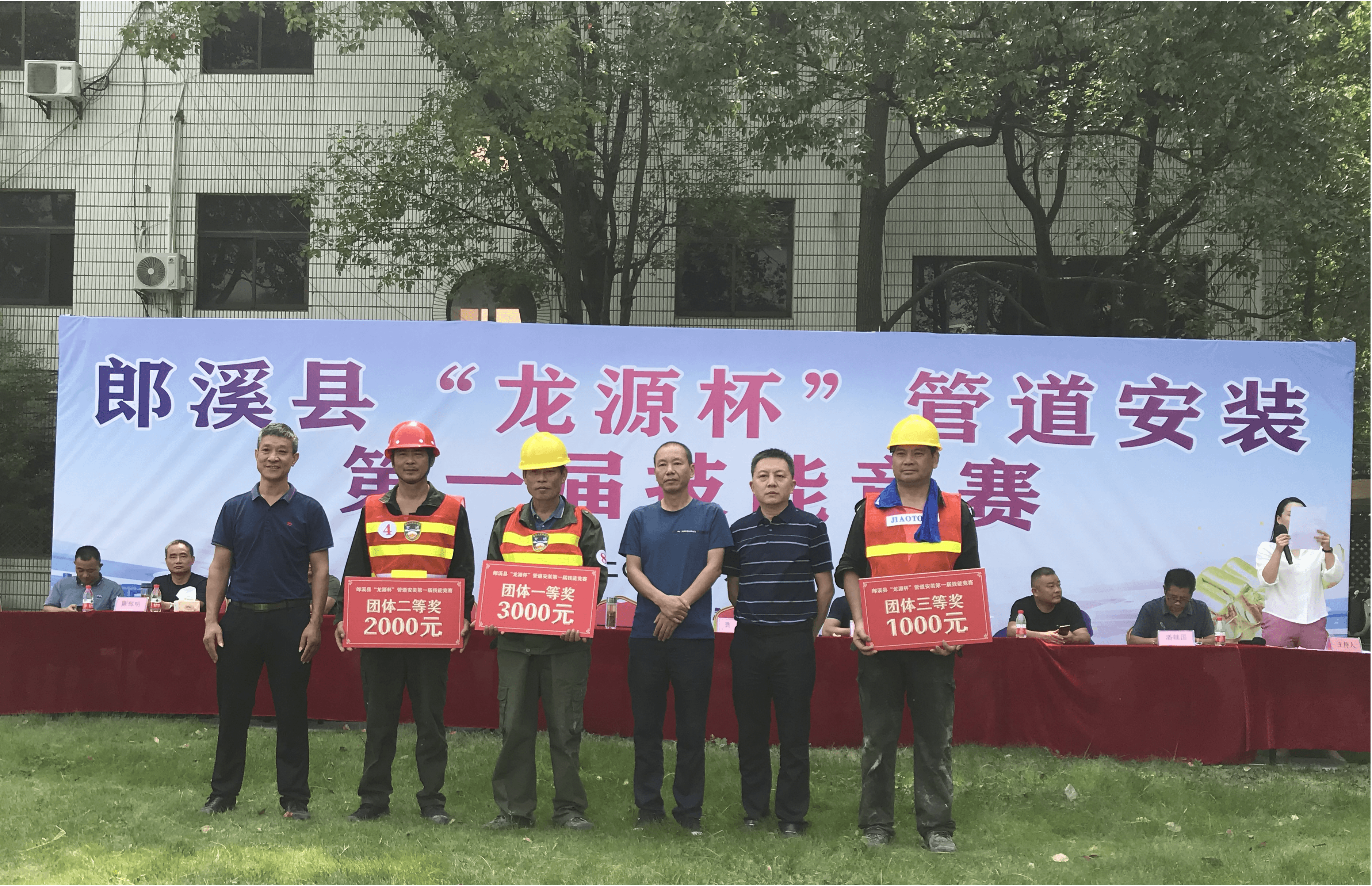 为贯彻落实党的十九大精神、习近平总书记考察安徽重要讲话精神,积极融入建设长三角一体化,发展“一地六县”合作区,紧紧围绕 “让老百姓喝上放心水、满意水,实现城乡供水一体化”的目标,以劳模精神、劳动精神、工匠精神为引领,打造知识型、技能型、创新型的职工队伍,加强优秀施工班组选择,提高城市供水服务水平。9月28日国庆前夕,郎溪县自来水总公司举办了第一届“龙源杯” 管道安装技能大赛。