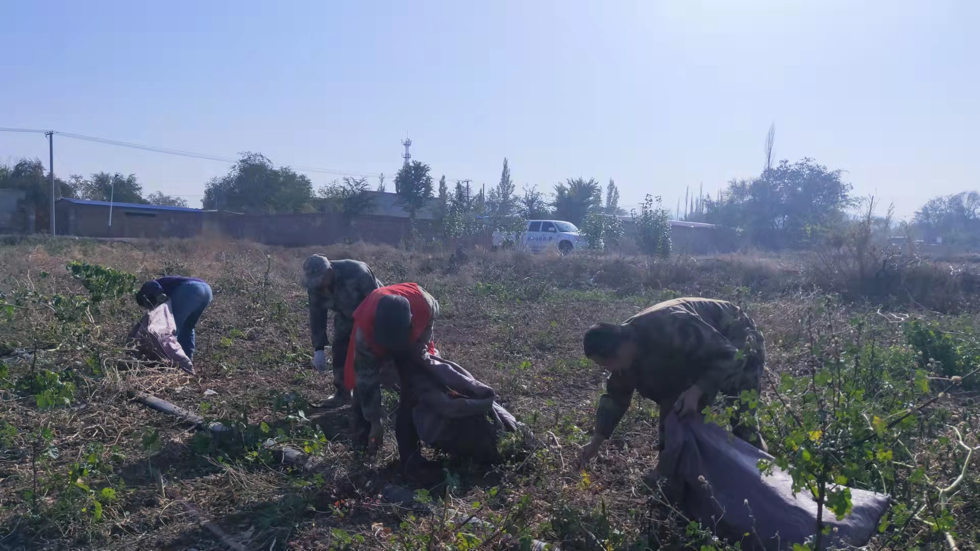 为进一步发挥好派出单位后盾作用,10月19日,阜康市正源供排水公司组织5名下沉干部,开展走访调研,了解工作队的工作和生活情况。当得知53岁的农户马淑霞,因今年6月爱人发生交通事故,腿部受伤,至今未痊愈,正在为家中30亩制种豇豆还未捡完的事发愁,正源供排水公司5人径直到田间,立即卷起袖子,一边帮马淑霞家干农活,一边宣传党的好政策。