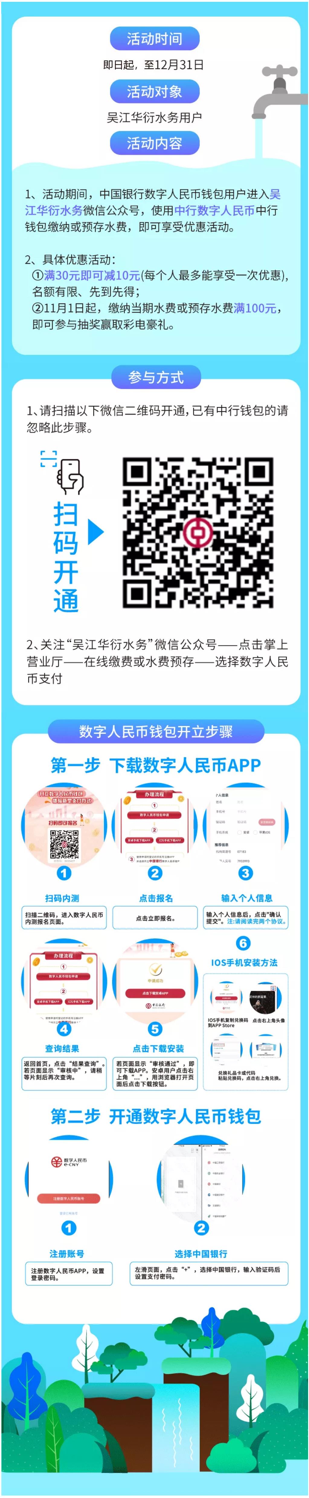 吴江开通数字人民币水务缴费服务,水费缴纳有优惠!