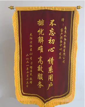 近日,太阳沟44号的居民代表来到水务集团,送上印有“不忘初心、情系用户,排忧解难、高效服务”字样的锦旗,感谢水务集团急群众所急,想群众所想,为大阳沟44号居民解决了用水难题。