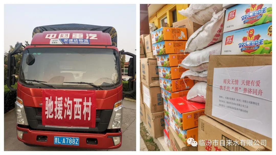 当求助信息由《中国给水排水》杂志社副主任、“市政给水技术交流二群”群主杨晓峰先生获悉并在群里转发后,一石激起千层浪,同胞血脉同搏,社会爱心涌流,国内供水和水务同行纷纷伸出援手,向沟西村捐款捐物,尤其是河南新乡首创水务有限公司,筹备一车物资并由工会领导亲自送达临汾。