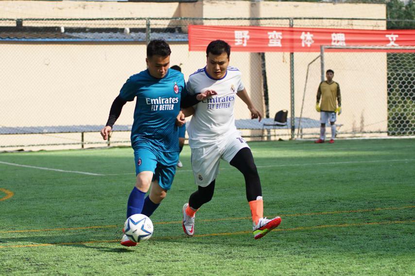 伴随着一声哨响,足球赛正式开始。比赛中,球员们激情与活力同在,对抗与友谊并存,足球健儿们各显神通,传球、带球、射门......或轻挑推射、或重炮远轰,默契的配合、娴熟的技术你来我往,战况激烈,比分胶着。场边观众们热血沸腾,掌声、欢呼声、助威声不绝于耳。