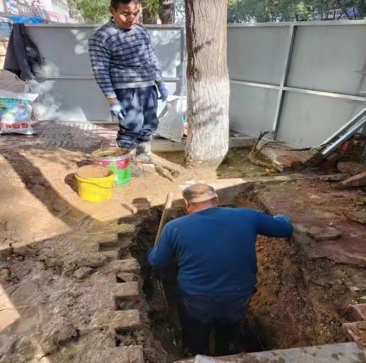 第二天早上8时接到用户报修电话,准格尔北路伊克昭中学西墙外跑水,维护队抢修人员马上赶往现场进行排查。发现是DN250球墨铸铁管破裂跑水。因在坏保砖上,且两棵树中间的地方有限,只能采用人工带水开挖作业。破路后发现土质疏松原土都是淤泥只能全部清除,给抢修造成了很大的困难。直到下午5时抢修完成,拉沙回填、恢复路面并恢复正常供水。