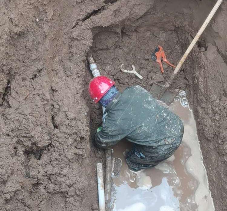 由于糖厂东悦华楼附近管道严重老化发脆,修好了没几天又爆管了,加上寒潮的突然来袭,今天早晨的温度只有零下10度,路面都已结冰,这给我们的维修工作加大了难度,公司维修工人杜永明、杨宇、孙凯,他们第一时间来到现场后,不畏严寒,脱掉棉大服,换上工作服,站在冰冷的水中,经过几个小时的紧急抢修,克服重重困难,终于在中午的时候能够给居民正常供水了。