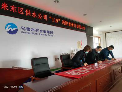 落实消防责任 防范安全风险 ——乌鲁木齐水业集团米东区供水公司 “119”消防宣传月动员大会