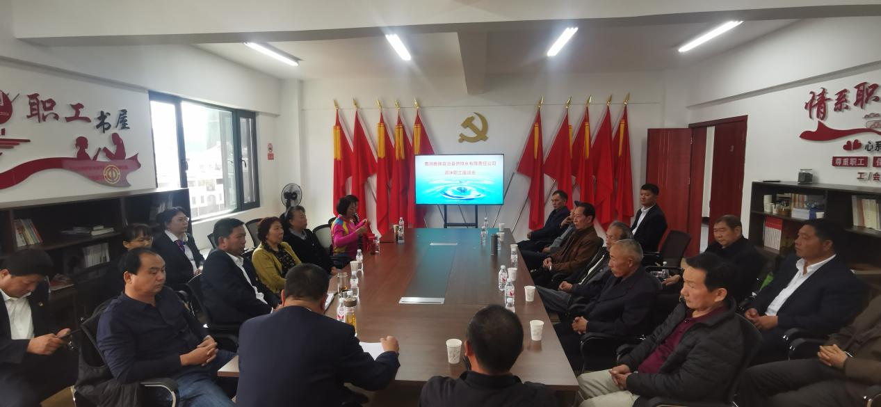 11月13日,南涧县供排水公司组织全部退休职工在供排水服务中心党员活动室召开座谈会,会议由副董事长黄耀生同志主持,县住建局分管副局长关元章同志到会并做发言,公司党支部、董事会全体成员参加会议。