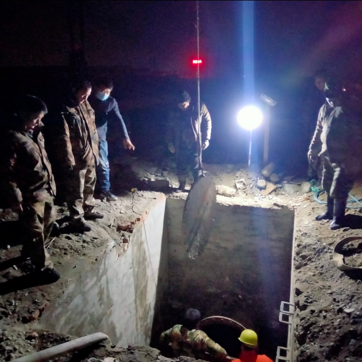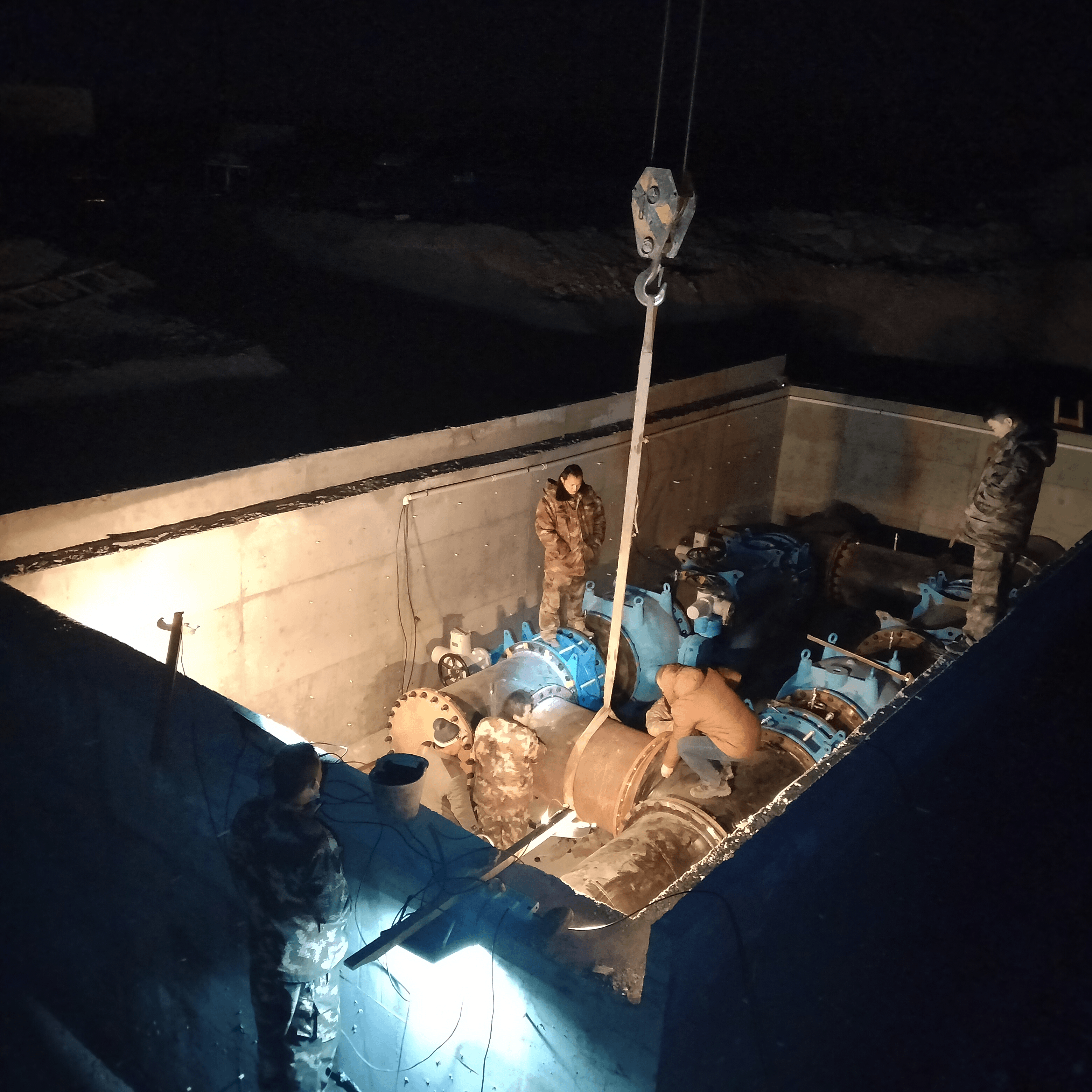 在寒冷的冬夜,全体抢修人员客服自然条件恶劣天气寒冷、施工作业难度大特点,全身心投入维修更换工作中,公司总经理卢金明同志也赶赴施工现场组织维修工作,截止11月19日下午全体参战人员圆满完成经开区供水管网设备更新升级工作,施工人员圆满完成二处盲板的拆除、新安装DN800短管2个、安装DN800三通1个,并进行供水管道焊接作业,2021年11月19日下午18:30完成对经开区DN800供水管道通水实验工作,保障经开区供水安全运行。全体参战人员用实际行动践行使命和担当,全力保障供水设施安全运行。