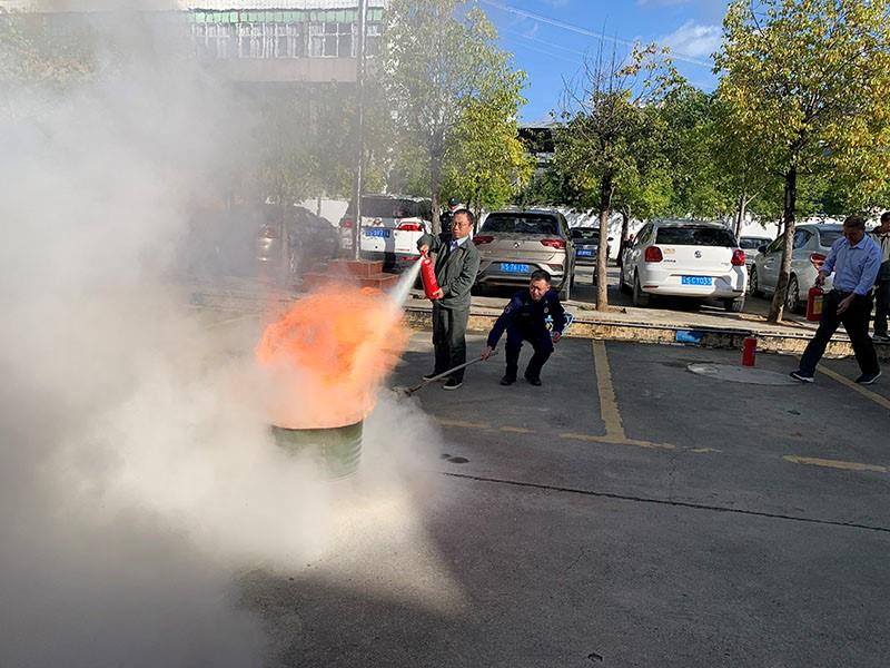 由市消防大队消防员讲解常见的消防器材常识、使用技巧、正确使用方法及在拨打“119”报警电话时需要提供的有效信息,讲解火灾中正确的防护自救及逃生常识。通过模拟起火,让大家学会正确使用手提灭火器对初起火灾进行灭火,并掌握灭火器“提、拔、握、压”的四字要领。