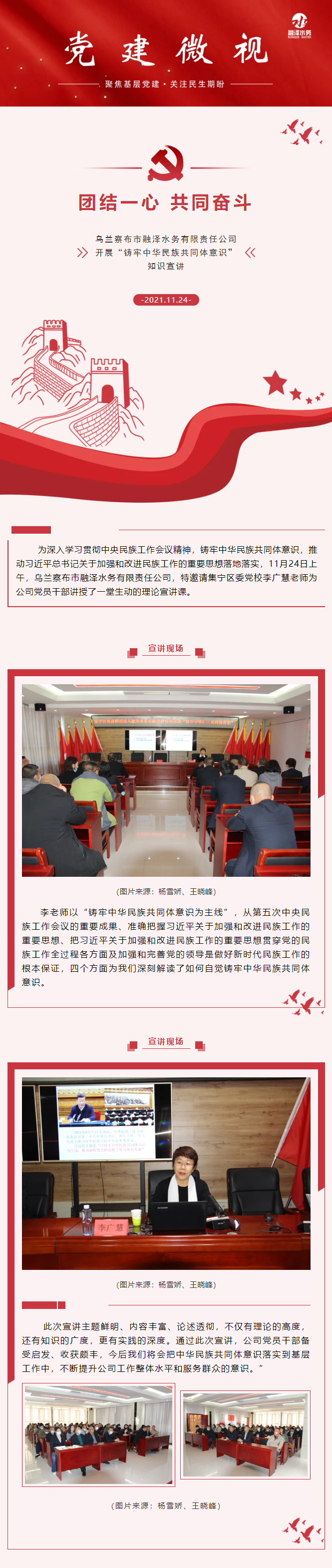 团结一心 共同奋斗丨乌兰察布市融泽水务有限责任公司开展“铸牢中华民族共同体意识”知识宣讲