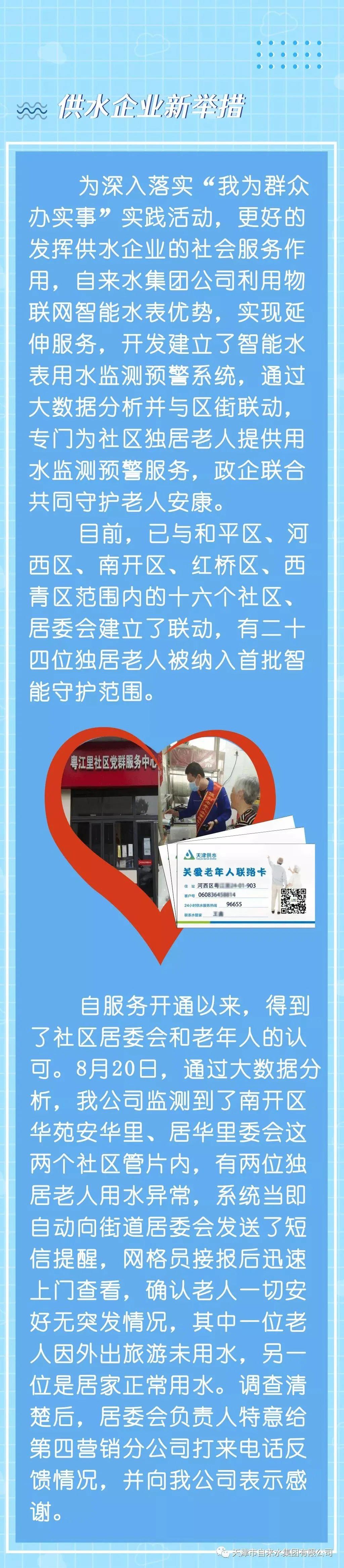 自来水集团智能水表延伸服务 守护社区独居老人安康 天津水务集团 前天