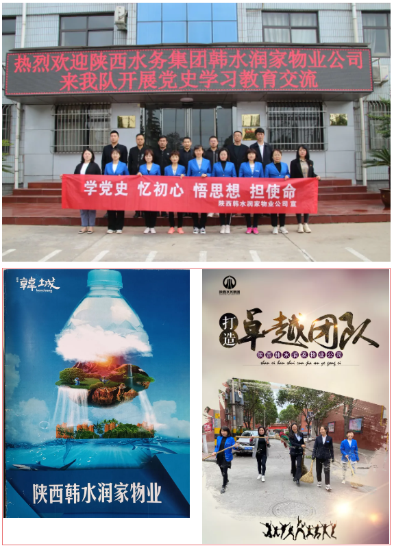 2021年1月,陕西韩水润家物业有限公司成立,注册资金100万元,为陕西省水务集团韩城水务公司的全资子公司。公司秉承“业主至上, 服务第一”根本宗旨,发挥供水一条龙服务优势,从水库源头取水至供水厂到用户家,让小区居民24小时用水无忧,为业主提供一个安全、文明、整洁、舒适、温馨的生活环境,全力打造韩城标杆服务管理公司。目前已接收45栋楼、1603户、26.49万平方米的物业管理工作。