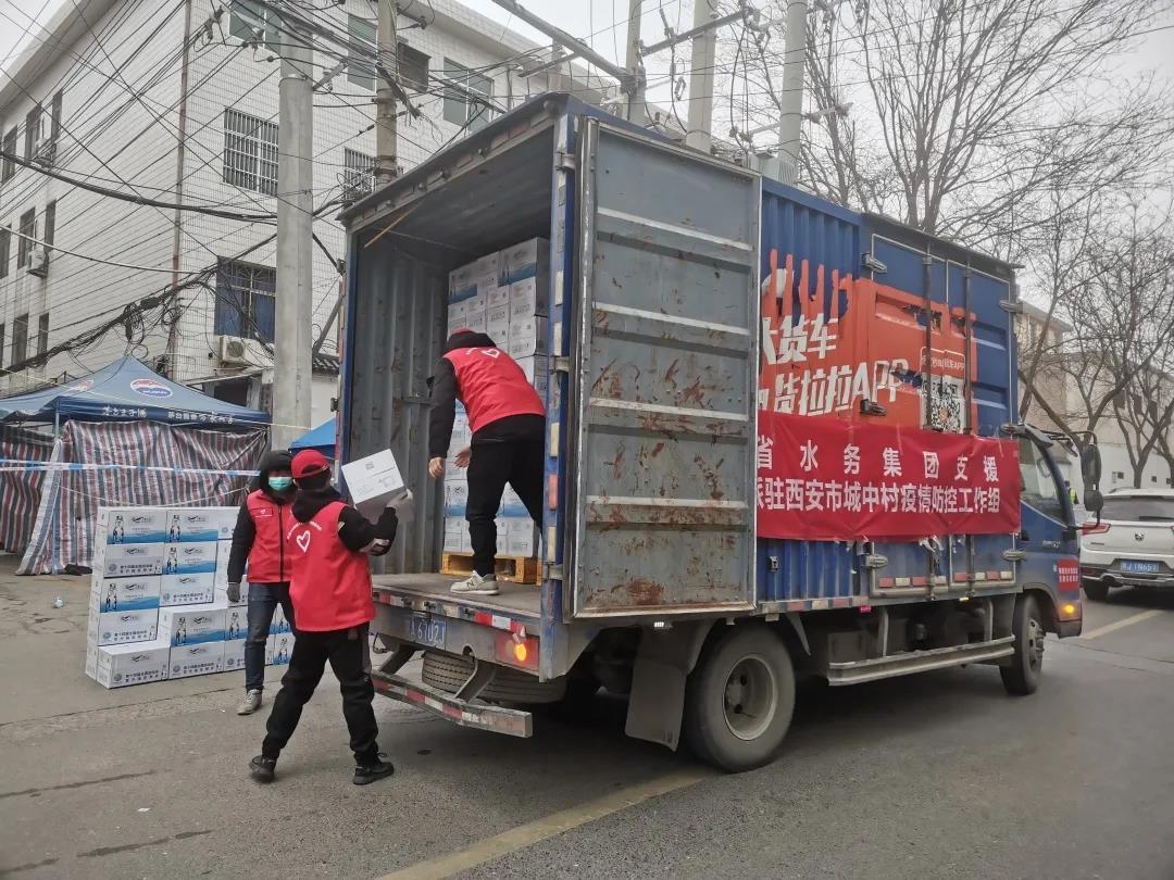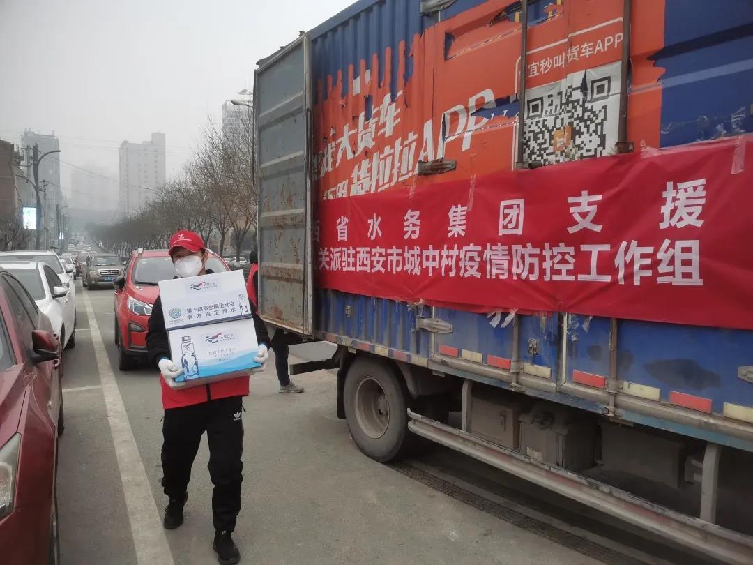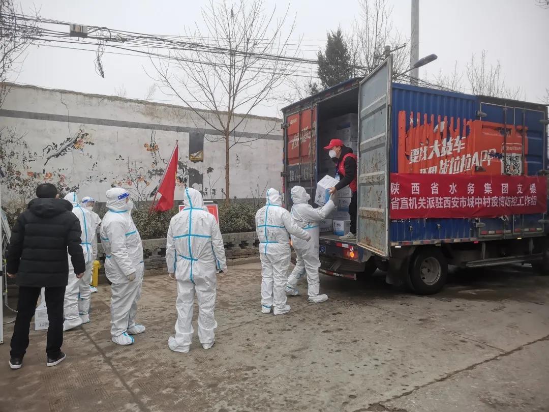 遍布西安雁塔、长安等各个区域的15个疫情防控专班专点内部道路复杂,同时面临疫情传播风险大等多种难题。陕西水务“大秦之水”按照集团党委安排,连夜部署,迅速组织人员、车辆,保障物质装车,以最快的速度将抗疫物资落实到位。