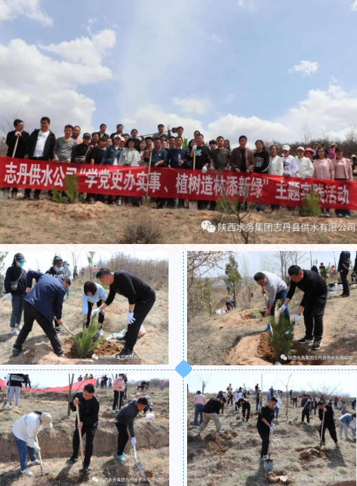2021年4月19日,“学党史,办实事,植树造林添新绿”主题实践活动在志丹任坪举行植树活动,志丹供水公司50多名青年职工参加。通过义务植树活动进一步增强了职工凝聚力和社会服务意识、群众植绿护绿的环保意识,为共建和谐美丽的志丹增添一抹生态绿,用实际行动为“十四运”献礼。