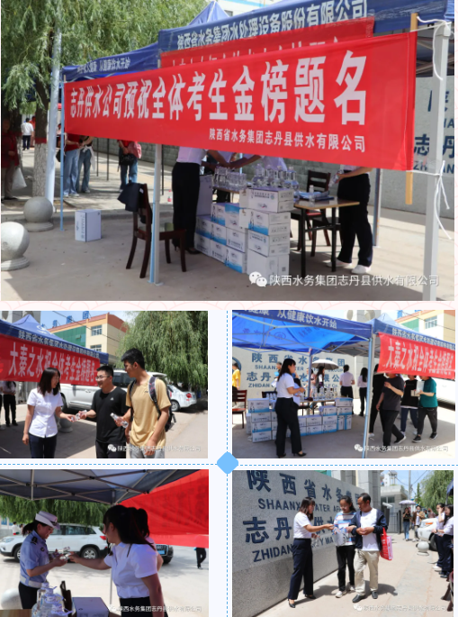 2021年6月7日,志丹供水公司组织员工在县高级中学考点开展“助力高考 爱心送水”公益活动。高考期间,志丹供水公司工作人员为过往赴考的莘莘学子、交通执勤警察及考场外焦急等待的家长送上大秦之水,并对莘莘学子送上最真诚的祝福。用实际行动展现供水企业责任担当,营造良好的社会形象。