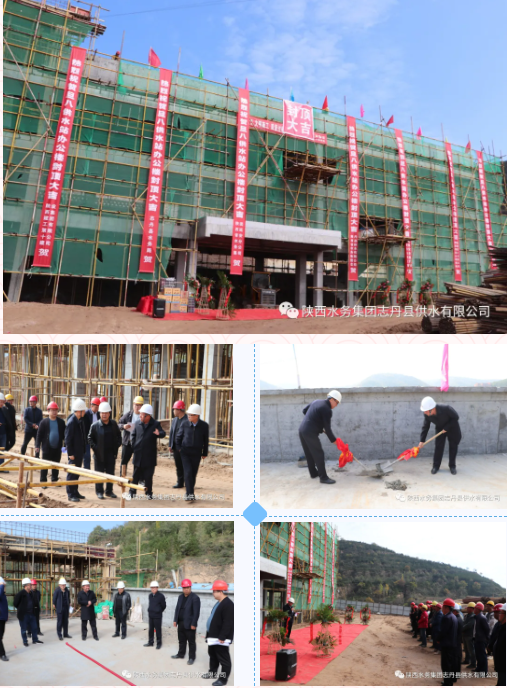 2021年10月25日,组织建设、设计、施工、监理及延安市水利工程质量安全监督站等单位,并邀请延安分公司总经理刘长涛同志参加旦八供水站办公楼封顶仪式。