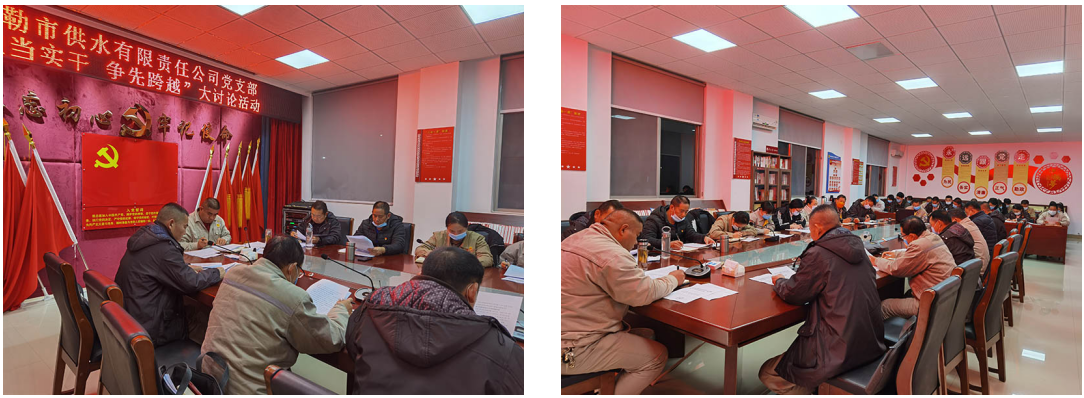 弥勒市供水公司党支部严格按照上级“担当实干 争先跨越”大讨论活动《实施细则》和《实施方案》,于近日开展“担当实干 争先跨越”大讨论第一次集中学习讨论活动。公司全体党员、入党积极分子、中层管理人员参加。