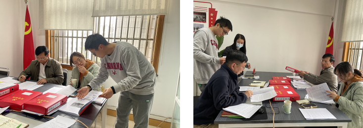 孔广政、李文杰同志查看协会党员活动室、党建文化墙等党建设施,认真翻阅了协会党支部基本组织、队伍、活动、制度、保障建设等党建工作台账,问询了解协会相关党建工作情况。