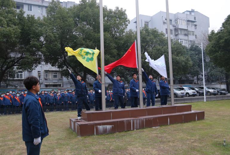 上午8时整,大会首先举行升旗仪式,鲜艳的五星红旗、中环水务司旗以及安全生产旗在庄严的国歌声中冉冉升起,迎接新年。新年新气象,踏上新征程。庄严的国歌激励着全体职工不忘初心,砥砺前行,坚决履行好中环供水人新的使命和职责。