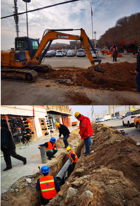 2台挖掘机一边破碎路面一边开挖,在配以人工挖至设计深度,紧接着管道铺设和掩埋有序进行,经过2天时间,于2022年1月21日晚上10:00结束施工恢复正常供水。