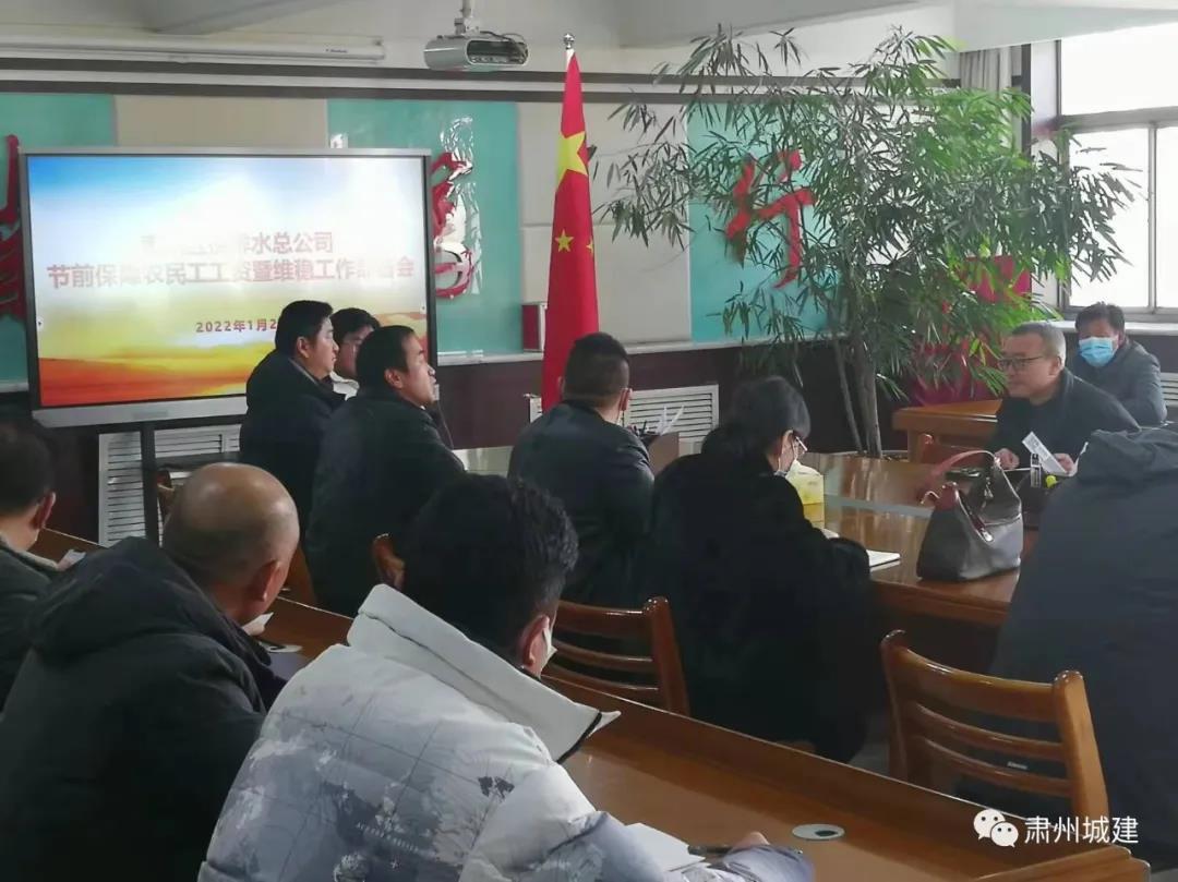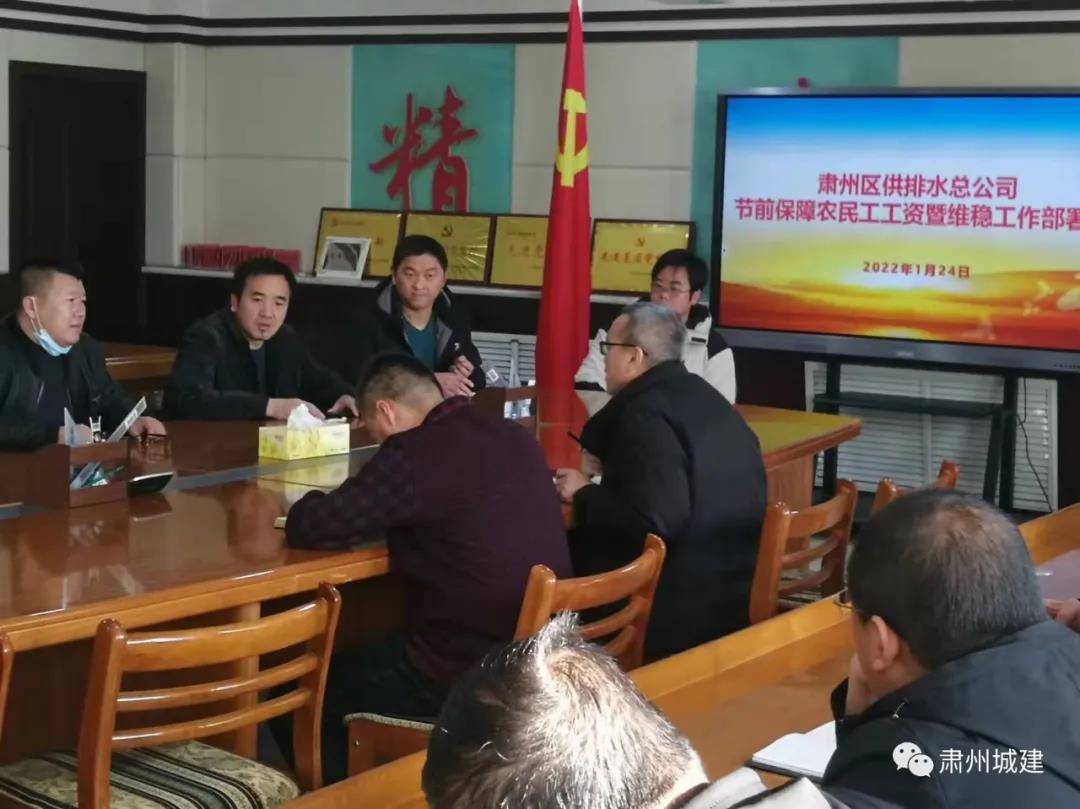 1月24日区供排水总公司组织召开节前保障农民工工资暨维稳工作部署会议,27家项目参建单位负责人参加会议。