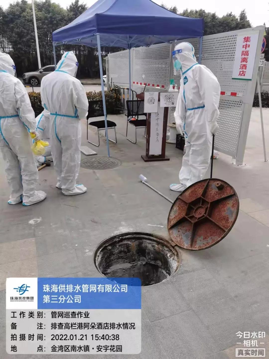 为有效防止新冠病毒通过粪口传播,水控集团下属管网公司在做好排水设施运维工作保障市政排水设施安全有序运行的同时,在疫情防控期间同步落实排水方面相关专项防疫措施,积极配合香洲区、高新区、金湾区、斗门区、横琴粤澳深度合作区等相关政府部门对星城大酒店、巢酒店、小林医院、珠明酒店、星乐度等60余个隔离场所的化粪池、室外排水井及区域一体化处理等排水设施进行全面排查(含部分场所消毒消杀)等工作,配合香洲区南屏镇封控区域疫情防控相关部门对广生村、将军山榕园等重点区域进行消毒消杀工作。截至1月23日累计出动排查人员(含消杀)约370余人次,切实做好疫情重点区域排水安全保障。