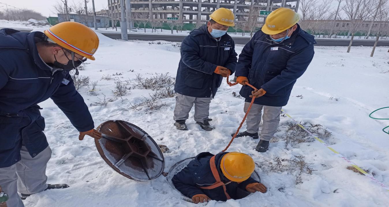 下午17时演练开始!新疆乌苏市供排水有限责任公司用户服务热线接到市民电话反映在新疆乌苏市新安江路检查井内供水管道跑水,有大量水向道路喷涌,可能是供水管道破损。客服部接到电话通知,经抢修工作人员现场勘查确定险情后,初步预判是DN300管道爆裂了,立即报告公司应急救援总指挥,启动应急抢修预案,接到指令后,各应急抢修人员立即赶到新安江路检查井事故现场,抢修人员立刻投入到紧张有序的抢修作业中,关闭阀门,控制现场,设立警示牌,维护现场秩序,对事故现场进行排水,开挖查找破损管线,确认是DN300管线爆管破裂,随即展开紧急抢修,抢修人员操作规范、技术娴熟,18时05分,经过紧张工作,抢修顺利完成,水质检测人员现场取水样检测并确认合格,可以并网送水。向总指挥请示后,抢修人员打开阀门,恢复供水。演练过程中各小组行动迅速、配合有序、处置得当,圆满地完成了此次演练任务。18时10分,总指挥指示,做好抢修后续保障工作,并宣布本次演练圆满结束。