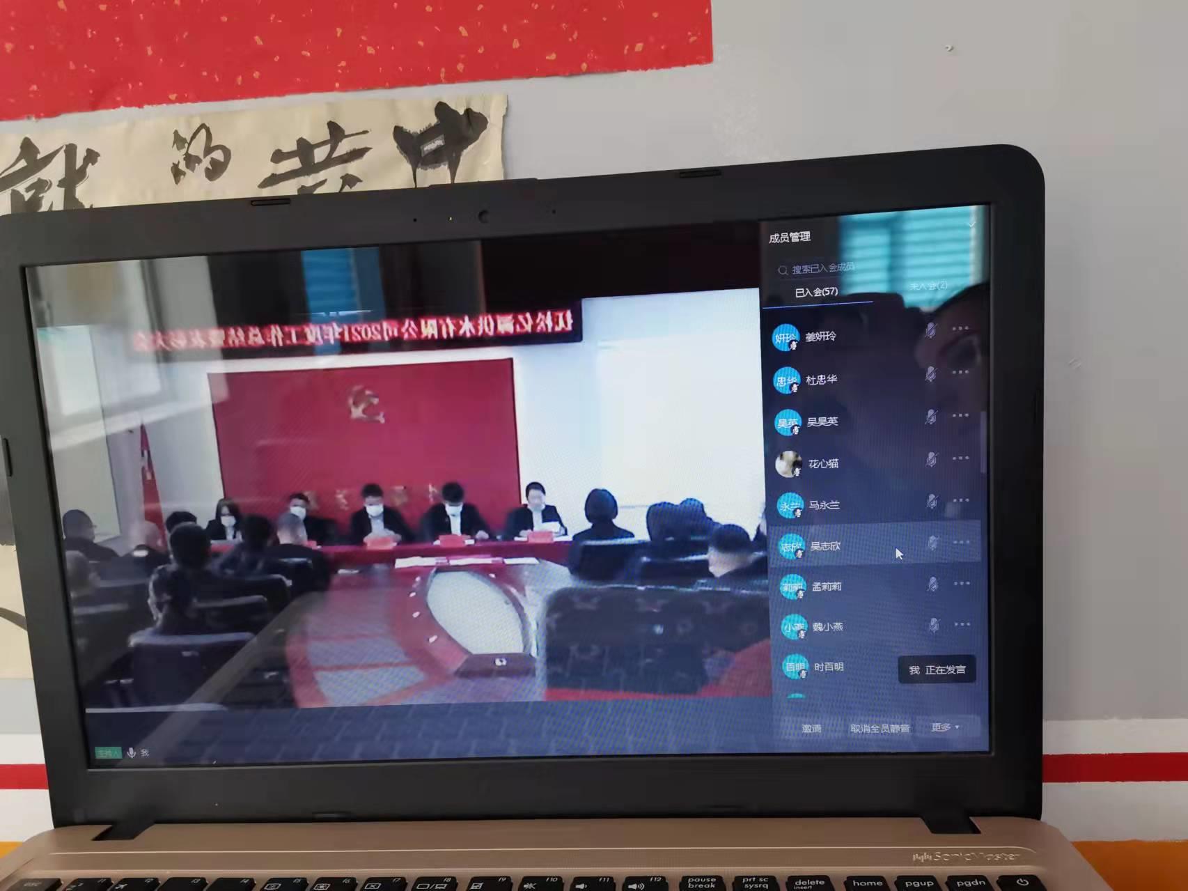 为进一步贯彻落实疫情防控部署和抚发集团的防疫工作要求,减少人员聚集、确保公司疫情防控工作安全、有序开展。1月26日上午9时,抚松亿源供水有限公司召开2021年度工作总结暨表彰大会视频会议,抚松亿源供水有限公司领导班子成员、获得表彰的先进集体和个人共计25人参加了现场会,其他在职员工采用钉钉软件视频会议功能,同步观看现场直播参会。场上场下共计81人参加会议。大会由工会主席王元华同志主持。