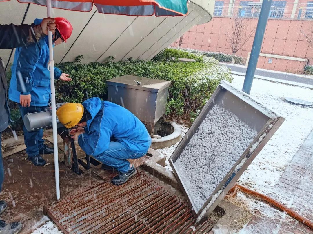 两大水厂生产运行人员加强巡检,对高压设备、生产设备、供水设施巡检到位,排除隐患,确保安全供水;水质检测人员严格水质把控,对每一道工序水质进行严密检测,确保优质供水;中控监测人员仔细观察生产数据指标是否正常,尤其注意出厂压力、pH值、出厂水浊度等,确保稳定供水;同时在水厂、增压站及各办公场所备好融雪盐、草垫及清扫工具,及时铲除楼梯口、主干道上的积雪,在关键路段铺设草垫,以防地面湿滑摔倒,确保人员安全。