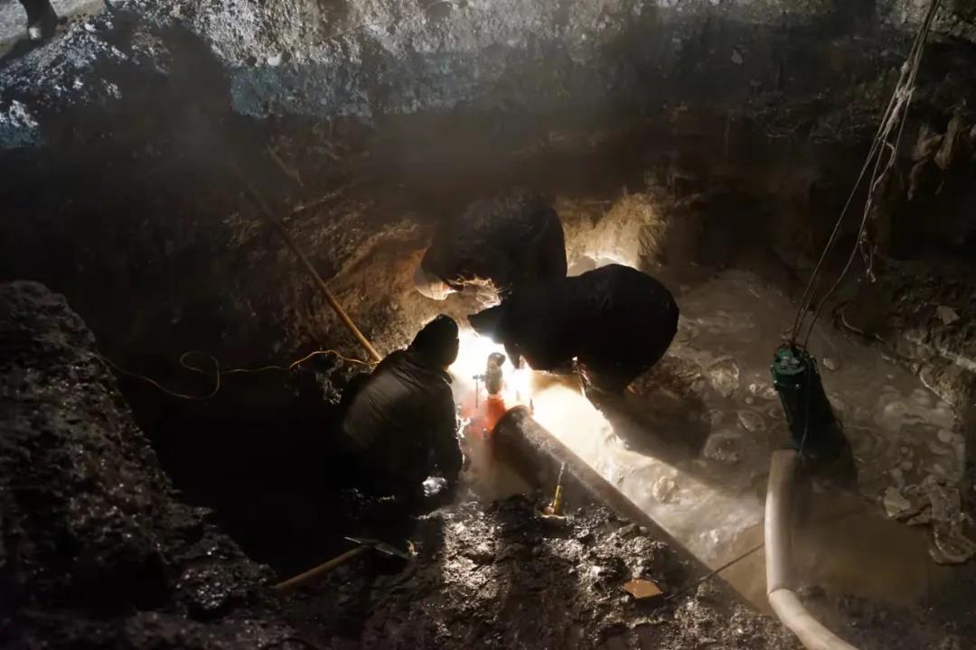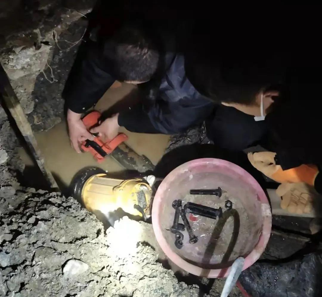 3个小时后,抢修人员将漏水点污水排出,经过清理管壁、裹膜、安装哈夫节修复等一系列工作后,爆裂管道终于成功修复,时间已是凌晨4时许,受影响路段终于恢复正常供水,抢修人员的手和脚都冻得僵硬。