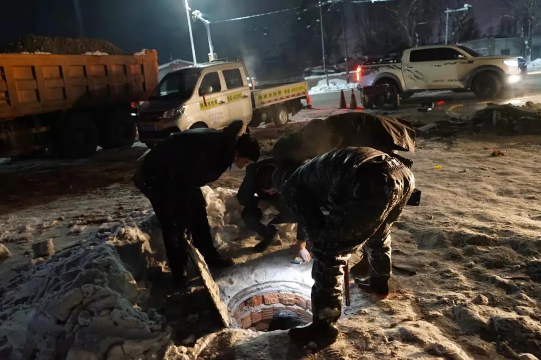 为缩短停水时间,保障用户春节期间的正常供水,韩忠强与抢修人员紧急制定抢修方案,并在漏水井坑冰冷的污水中迅速找到漏水点。因受场地所限,井坑内一次最多容纳两人,抢修人员分批下坑作业,不畏严寒,争分夺秒抢修供水管线。