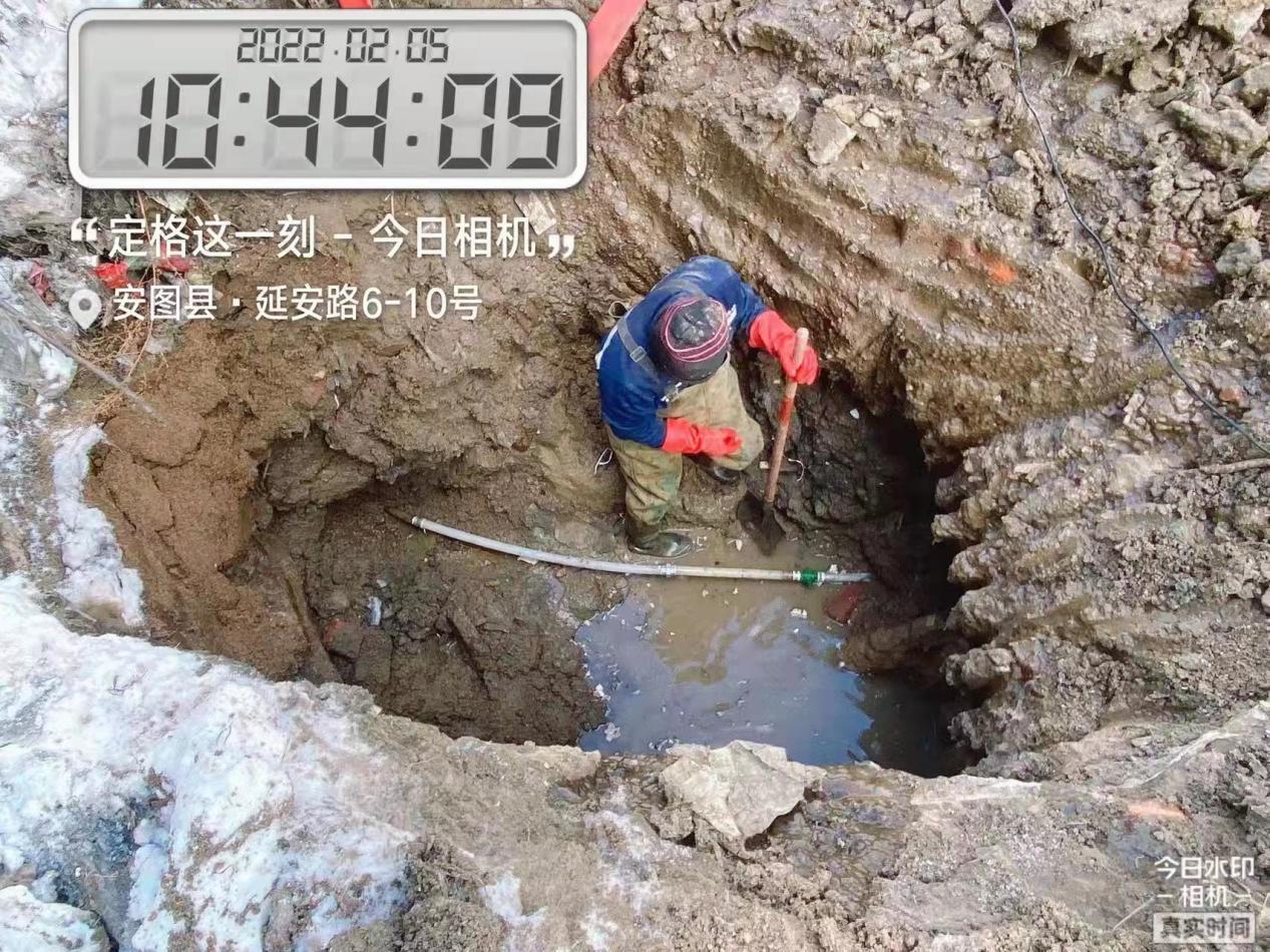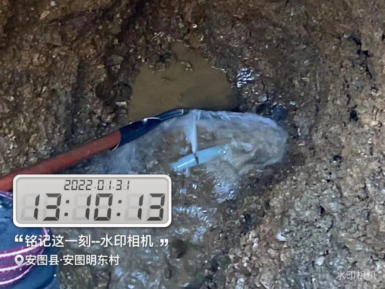 除夕早上7点多,县自来水公司供水热线接到群众来电,称明东村发现地面冒水,疑似自来水管道破裂。随后,维修队工作人员迅速赶到现场。为了不影响周围居民春节期间的正常用水,抢修人员不畏严寒,带水作业,迅速对管道进行抢修,经过7个多小时的连续奋战,在下午3点维修完毕。