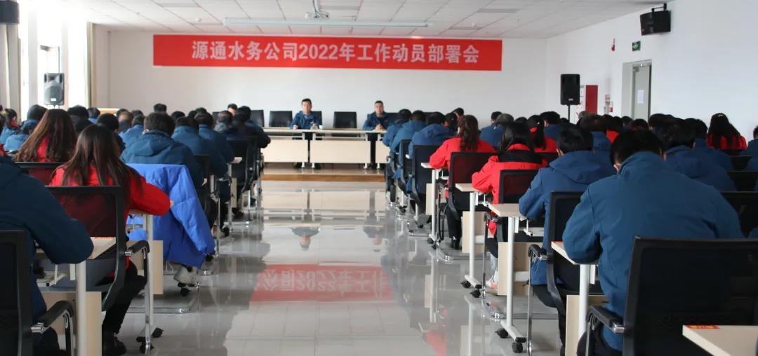 2月13日,源通水务公司召开了2022年工作动员部署会议。公司班子成员,各分公司、部室、坷台水厂及各乡镇供水站全体员工,共计120多人参加会议。