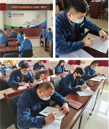 为使今年工作开好头、起好步,确保节后各项工作迅速回归工作常态,日前,乌鲁木齐水业集团新市区供水公司党支部组织全体党员开展《中国共产党纪律检查委员会工作条例》专题学习及专题测试,深化思想认识,增强行动自觉。