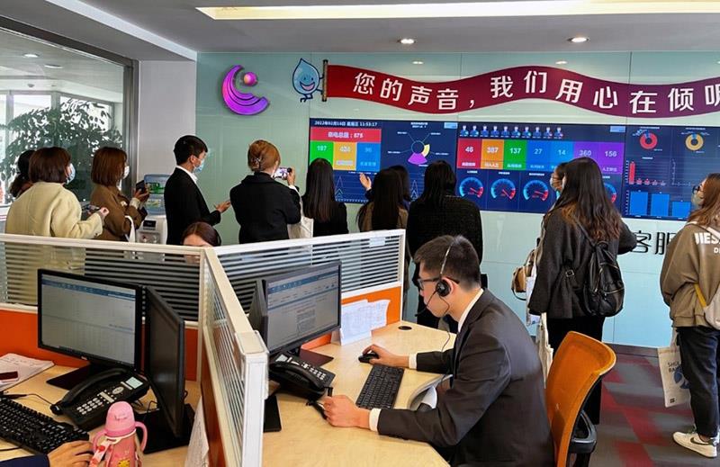 随后,参观团前往客户服务热线中心。客户服务热线中心自成立以来,一直都是一支充满朝气的队伍。在组织开展共青团工作方面也有丰富的经验,曾获得 “昆明青年五四奖章集体”和 “青年文明号”等荣誉称号。参观过程中,工作人员向大家介绍了客服热线中心的主要业务和热线团支部开展共青团工作的方法和经验。让大家更加全面、直观的了解供水服务热线的日常工作及客服热线中心团员青年的工作状态。