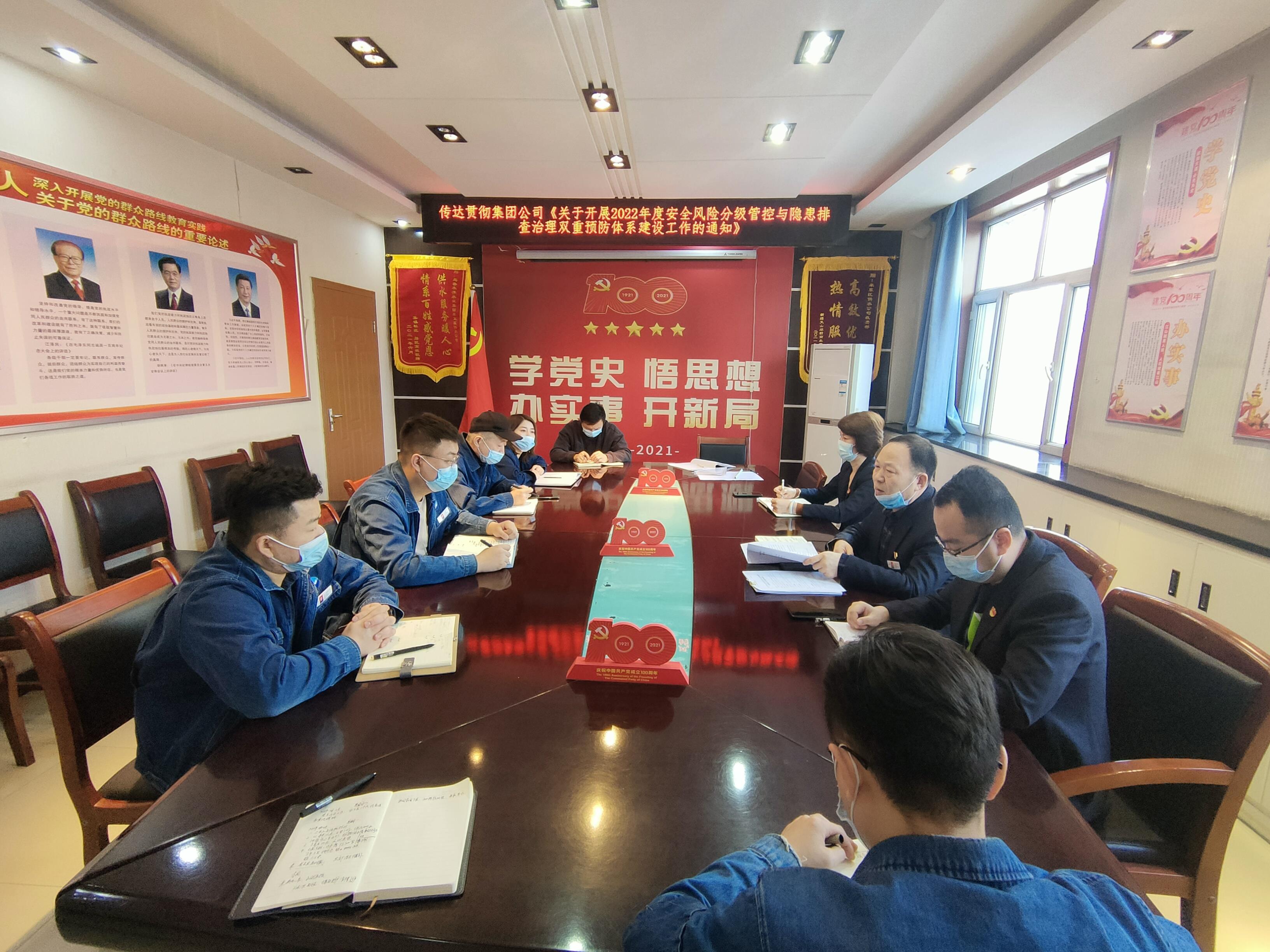 强化风险管控,树牢红线意识。为加强米东区供水公司全体职工对安全生产工作的重视,提升安全生产的能力和意识,进一步为广大干部职工营造良好的工作环境。16日上午,米东区供水公司领导班子组织重点岗位人员在二楼会议室召开会议,会议首先传达学习了《关于开展2022年度安全风险分级管控与隐患排查治理双重预防体系建设工作的通知》和春季有限空间作业安全注意事项。