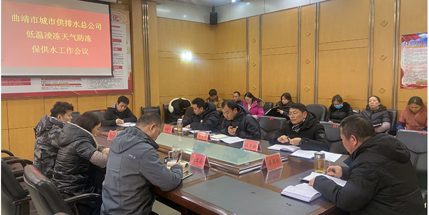 曲靖市城市供排水总公司高度重视此次低温凌冻天气防冻保供水工作,及时召开会议,提前对低温凌冻天气防冻保供水工作进行部署,制定低温凌冻天气防冻保供水应急工作方案,明确各部门职责,提前采购储备低温凌冻天气抢修急需物资;成立七个专项工作组和七个包保服务工作组,提前对供水管网、阀门安排检修排查,对重点区域加强巡查排查力度,确保第一时间处置低温凌冻天气突发供水情况,确保城区正常供水。
