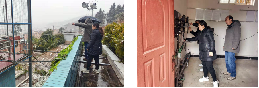 2月22日,双柏县城区出现雨雪天气,双柏福源自来水公司领导班子到水处理净水厂视察供水保障情况,对设备进行安全检查,保障供水安全。要求严格执行24小时值班和领导带班制度,确保通信联络畅通,加强信息报送工作,积极营造公司上下齐心协力共抗冰雪的工作氛围。