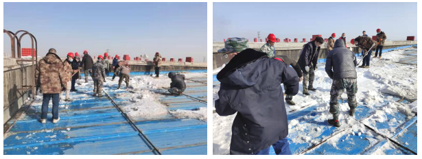 为防止冰雪融化造成屋面渗漏和对高密池工艺运行造成影响,日前,石墩子山水厂设备技术部与生产运行部组织人员对高密池楼顶的积雪和垃圾进行了集中清理,消除安全隐患。