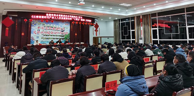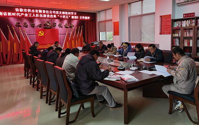 根据《红河州新时期产业工人队伍建设改革工作协调领导小组办公室关于转发云南省产改办下发的〈关于认真贯彻执行云南省新时代产业工人队伍建设改革“十四五”规划的通知〉的通知》要求,近日,弥勒市供水公司在党员学习会上和员工大会上分别组织全体党员和干部职工学习《云南省新时期产业工人队伍建设改革“十四五”规划》文件精神。