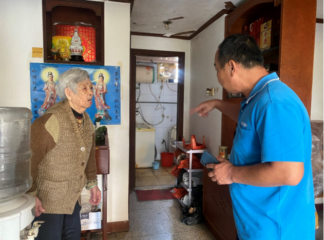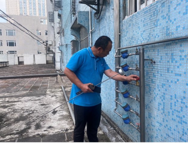 (中部片区党员先锋服务队正与检查独居老人智能水表情况)