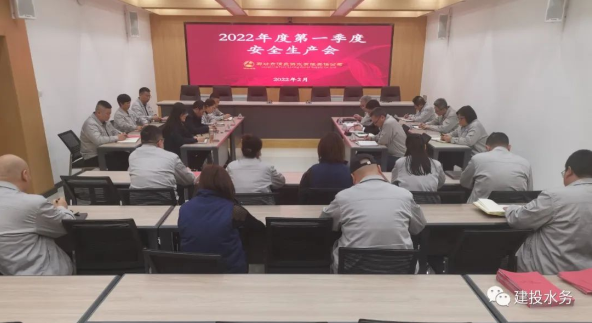 会议传达学习了《河北建投水务投资有限公司2022年春节、两会安全防范工作实施方案》和《廊坊市住房和城乡建设局关于做好节后返岗疫情防控工作的通知》有关精神,集中观看了河北应急管理厅《开工第一课》视频教育片,举行了2022年安全生产责任书签订仪式。